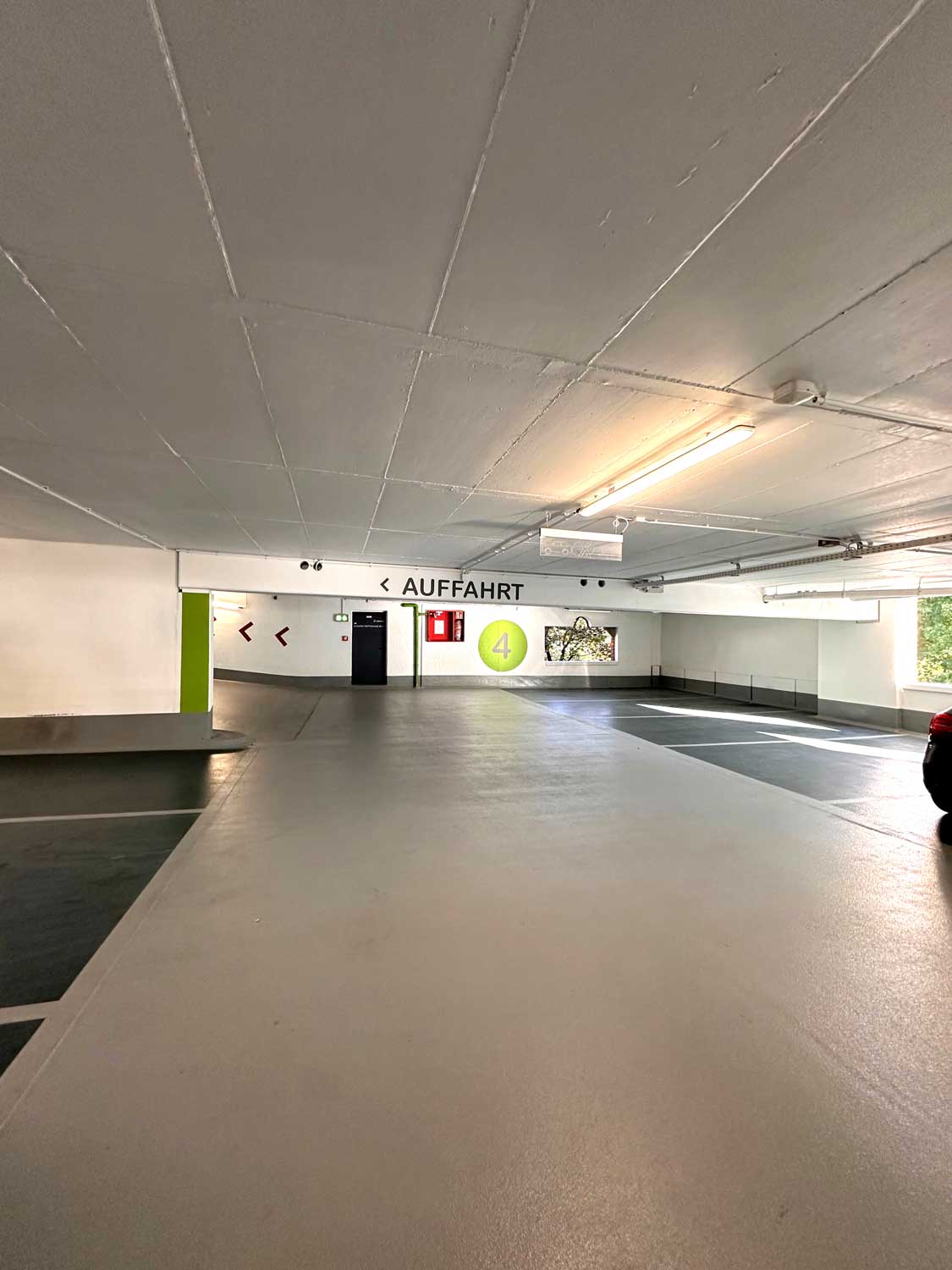 Das Parkhaus aus dem Jahre 1987 sollte aufgrund diverser Schäden saniert werden. Die Betoninstandsetzungsarbeiten wurden auf zwei Bauabschnitte aufgeteilt, so wurde die Nutzung während der Baumaßnahmen sichergestellt.